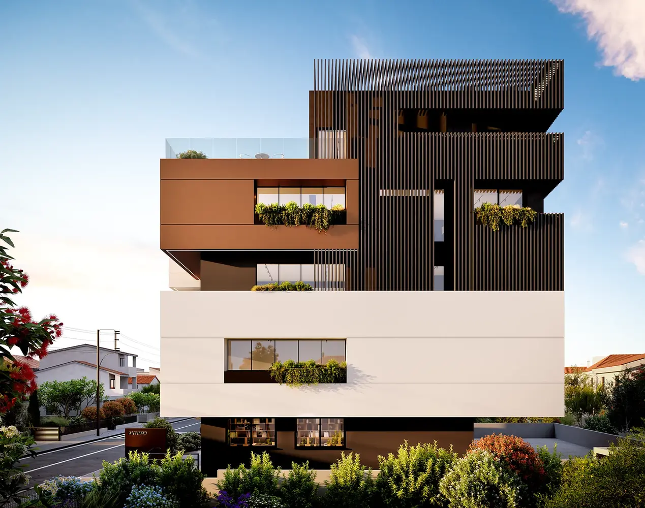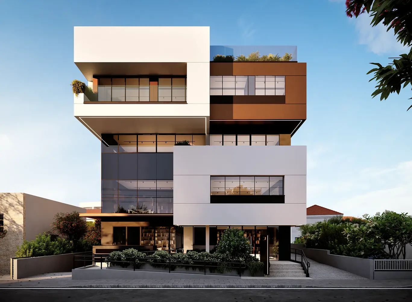 ASTYMAP is a three-storey office building with a basement in Limassol that explores the interplay of solid and void through a dynamic composition of overlapping volumes. Clean lines, deep cantilevers, and extensive glazing create a strong architectural identity while allowing natural light to penetrate deep into the interior spaces. Integrated greenery softens the geometric form and enhances the connection between architecture and its urban context. The project balances privacy and openness, combining refined materiality with a timeless, modern expression.